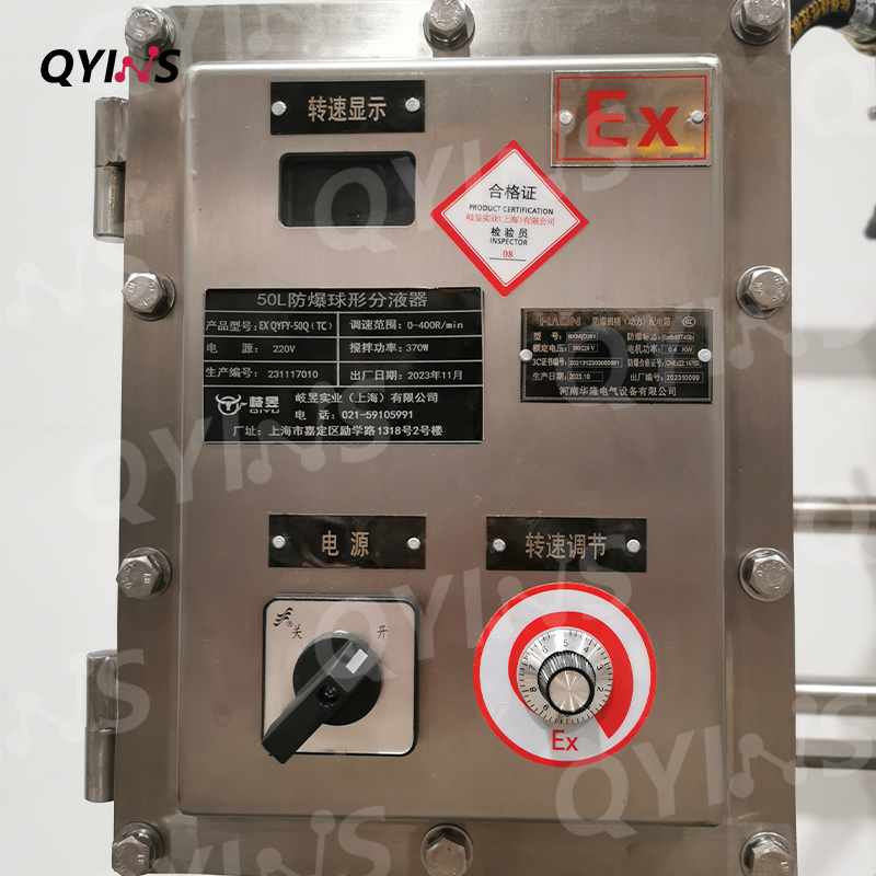 防爆304不銹鋼外殼,耐腐蝕,數(shù)顯溫度和轉(zhuǎn)速,符合GMP車間防爆等級(jí):ExdIBT4Gb:適用于GMP車間,防止火花產(chǎn)生。