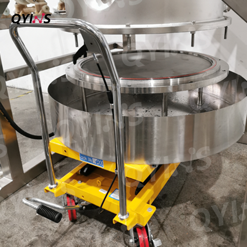 可移動升降接料小車+不銹鋼托盤,輔助使用人員快速安裝或拆卸過濾裝置,便于收集固狀粉狀物料。