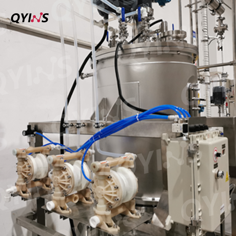 氣動隔膜泵實現(xiàn)半自動進出料,有效減少人工操作,大大提高工作效率。