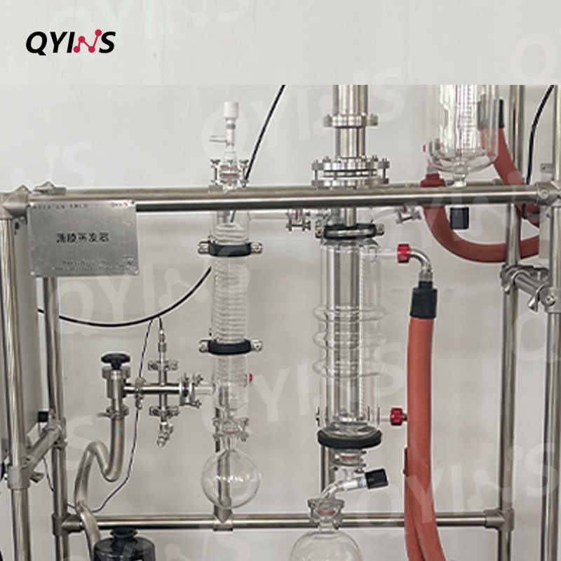 薄膜蒸發(fā)器高透明度,高真空度蒸餾提取,在化妝品原料、香料、染料等精細(xì)化工產(chǎn)品的生產(chǎn)中,用于原料的濃縮、精制和分離,如在香料生產(chǎn)中,可將香料提取物進(jìn)行濃縮,提高香料的濃度和品質(zhì)