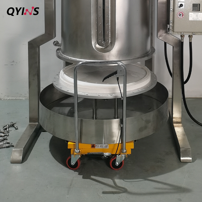 可移動(dòng)升降接料小車,便于收集物料及過濾底盤的拆卸,安裝。