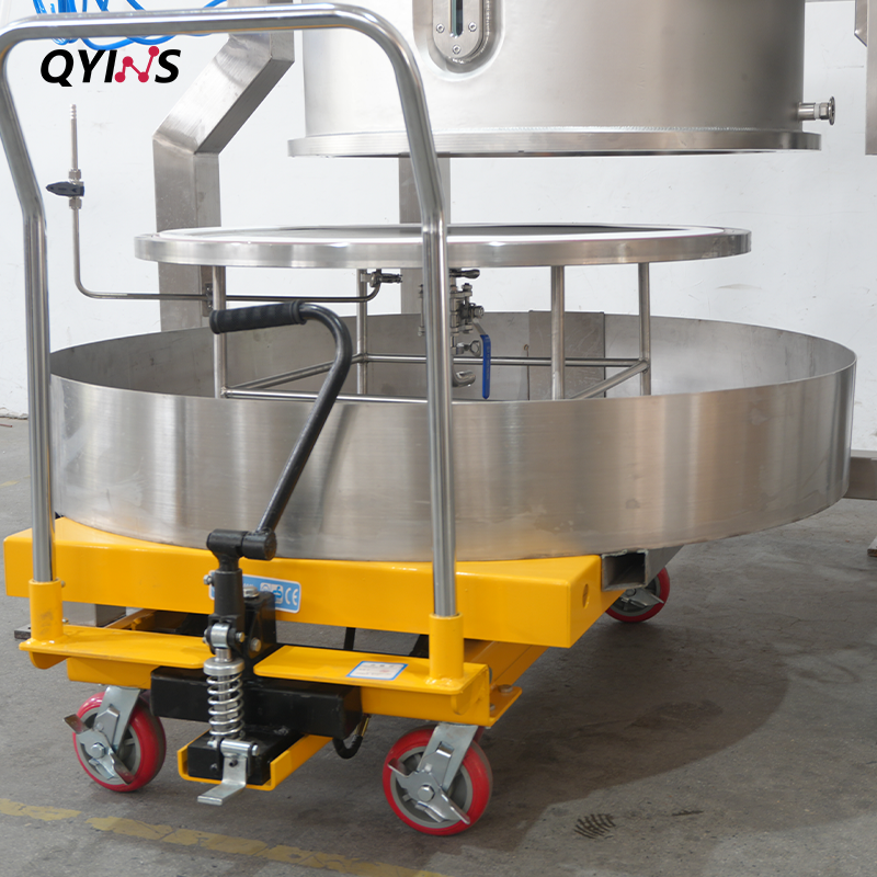 可移動升降接料小車+不銹鋼托盤,輔助使用人員快速安裝或拆卸過濾裝置,便于收集固狀粉狀物料。