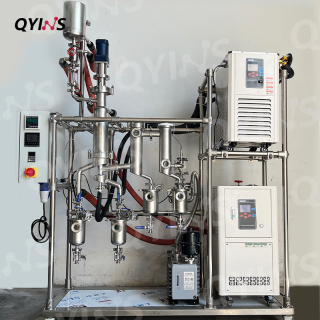 本款不銹鋼分子蒸餾,主材采用316不銹鋼,配備旋片式真空泵及擴(kuò)散泵,極限空載真空度可達(dá)1Pa以內(nèi)。在齒輪泵作用下,物料能夠?qū)崿F(xiàn)自動(dòng)進(jìn)出,且進(jìn)出管道全部采用夾套保溫設(shè)計(jì),避免高熔點(diǎn)物料在反應(yīng)過程中固化結(jié)晶。